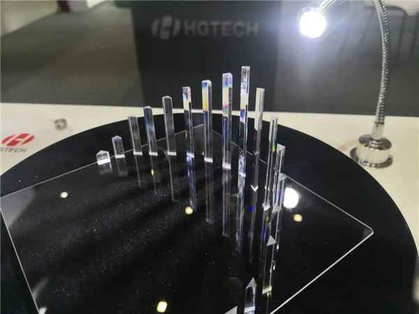 現場展示的全自動玻璃雙頭打孔設備,較傳統加工效率提升10倍,最小加工孔徑可達0.1mm,接近一根頭發絲的直徑;3D激光雕刻機可自動對焦,滿足個性化雕刻需求。