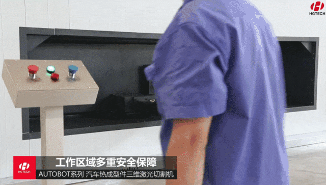 加工頭可在全功能工作區(qū)內(nèi)通過手持移動示教,同時在隨動軸和切割頭之間設(shè)計安裝了防碰裝置,配備全密封激光防護房,機床整體安全防護符合CE國際安全標(biāo)準(zhǔn)。