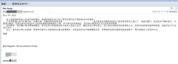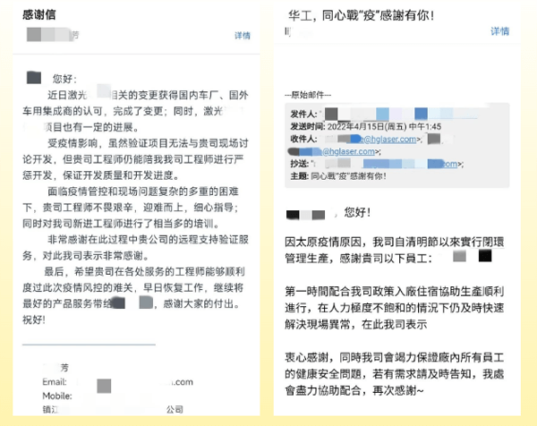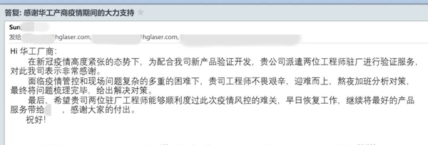 近期,全國多省份、多起疫情同時(shí)發(fā)生,牽動(dòng)人心。華工激光在特殊時(shí)期仍保持著高效優(yōu)質(zhì)的服務(wù),一封封來自各地客戶的感謝信是客戶對(duì)我們的贊許與肯定!