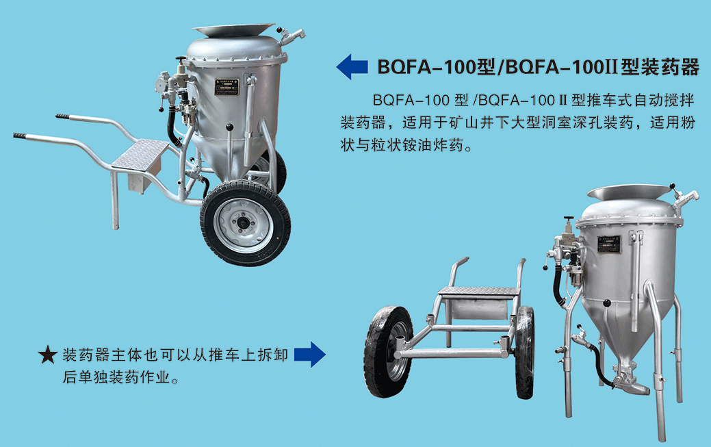BQFA型自動攪拌系列裝藥器,與人工攪拌相比,無需人工攪拌,節(jié)省人力且攪拌均勻,移動方便,操作簡單便捷,大大降低人工勞動強(qiáng)度,提高裝藥密度、爆破質(zhì)量,減少施工作業(yè)時間。先后出口塔吉克斯坦、老撾,秘魯,尼日利亞、法國等國家,使用情況反饋中得到一致好評并大力推薦。