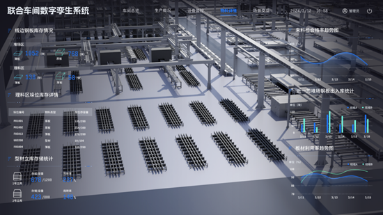 智能中控系統是設備調度、控制于一體的信息化系統,通過打通設備與計劃之間信息傳遞,直接控制各類輸送及生產加工設備,完成從板材出庫、切割、分揀、運輸、存儲全過程的自動化調度及作業。系統通過調度算法最優匹配零件生產路徑、分配生產資源盡可能降低生產過程中的浪費。