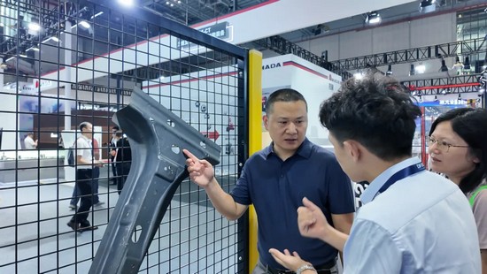 華工激光還帶來了豐富的行業展品,激光君在現場為客戶詳解汽車制造、船舶橋梁、鈑金加工等系列解決方案。