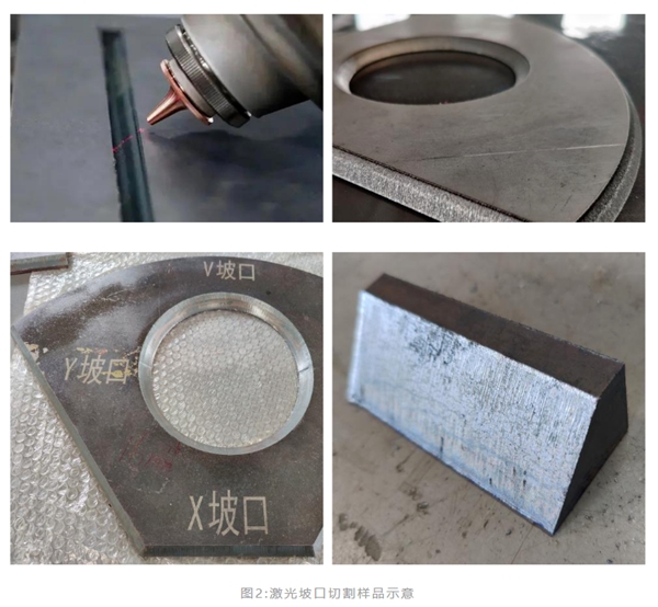 相比以上傳統開坡口方式,激光是目前在市場運用中熱變形最小,切口質量最佳,尺寸精度最高并且穩定性最好的一種新型加工方式。目前,國內外已經普遍采用激光切割機完成20mm甚至更厚鋼板的坡口加工,可一次成形V、X、Y等形狀的坡口,將傳統切割、銑削等多道工序流程一次完成,不僅可以大大提高效率、保證質量、節約資源,并且切割零件質量、尺寸精度較高,Y、K等形態坡口留根均勻一致,具有較高的表面質量,如圖2所示。