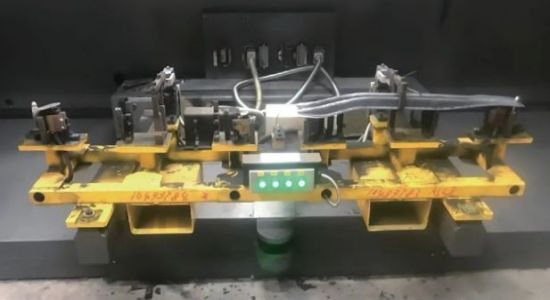⑴落料片的生產。落料片是在開卷落料線上生產出來特定輪廓的料片,然后將其運送至熱成形線,由機器人通過真空吸盤將落料片送至打碼機打碼之后,放至輸送線上傳送至加熱爐。