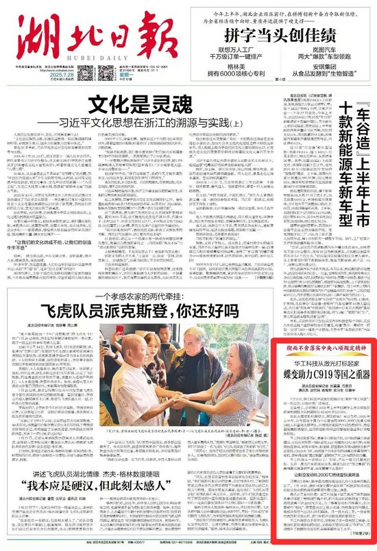 《湖北日報》頭版報道:華工科技從激光打標(biāo)起家,蝶變助力C919等國之重器