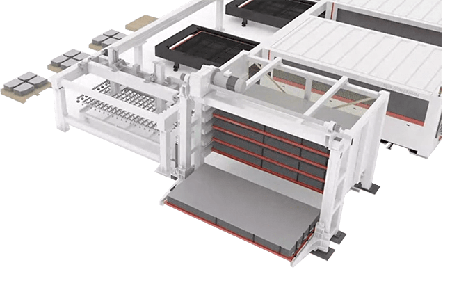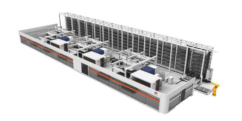 • 實現物料立體存儲,自動出入庫,配套數控沖床、激光切割機、數控折彎機等鈑金設備