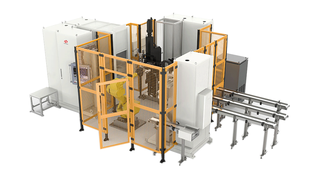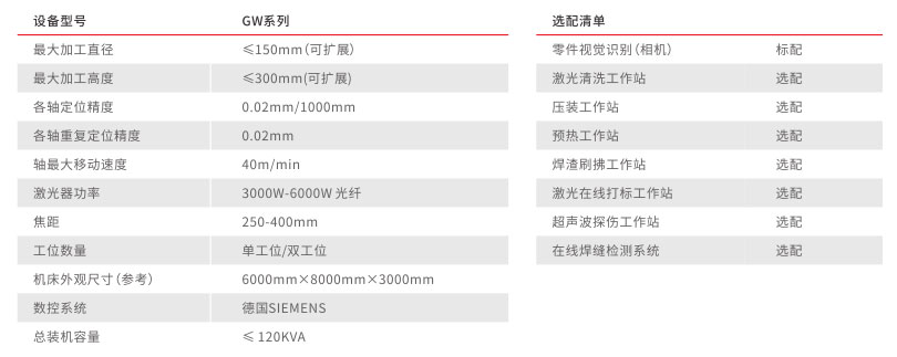 GW系列汽車傳動件全自動焊接生產線采用相同或不同材質,將兩種或兩種以上的齒輪類零件壓裝后采用激光焊接而成(送絲或不送絲),焊接完成的合成材料達到行業內需要的強度要求、重量要求及特定的功能性要求。該焊接系統配備全自動上、下料機械手、全自動工件壓裝機構,激光清洗機構、焊渣刷佛機構,成次品輸送料道等,可擴展在線激光打標、超聲波探傷、齒輪加熱系統等功能。配合光纖焊接頭、焊縫跟蹤及LWM激光檢測系統,可實現低成本、高質量、高產出的連續生產。主要加工汽車變速箱內的中心軸回轉類零件的焊接總成,主要包含齒輪轂件、齒輪離合器件、中心軸齒轂總成、中心套齒轂總成、雙聯齒輪總成件、差速器總成件等變速箱內的核心傳動部件。