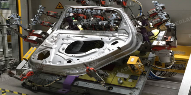 面向汽車廠白車身連接工程領(lǐng)域,應(yīng)用于鋼&鋁材質(zhì)的車門內(nèi)板和窗框加強(qiáng)板的連接工藝。其焊接法蘭翻邊更窄。因此,使用四門激光飛行焊工藝是解決車身輕量化的有效手段之一。