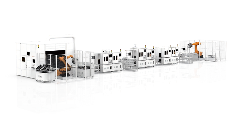 模組自動上料裝配、側(cè)板焊接、極柱清洗、焊接前CCD檢測、匯流排安裝、匯流排焊接、焊后CCD檢測、模組測試、模組下線,AGV轉(zhuǎn)運等全套工序。