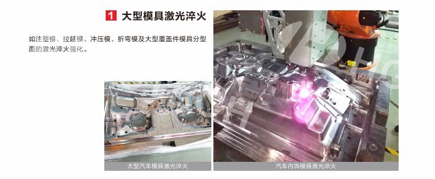 如注塑模、拉延模、折彎模及大型覆蓋件模具分型面的激光淬火強化。